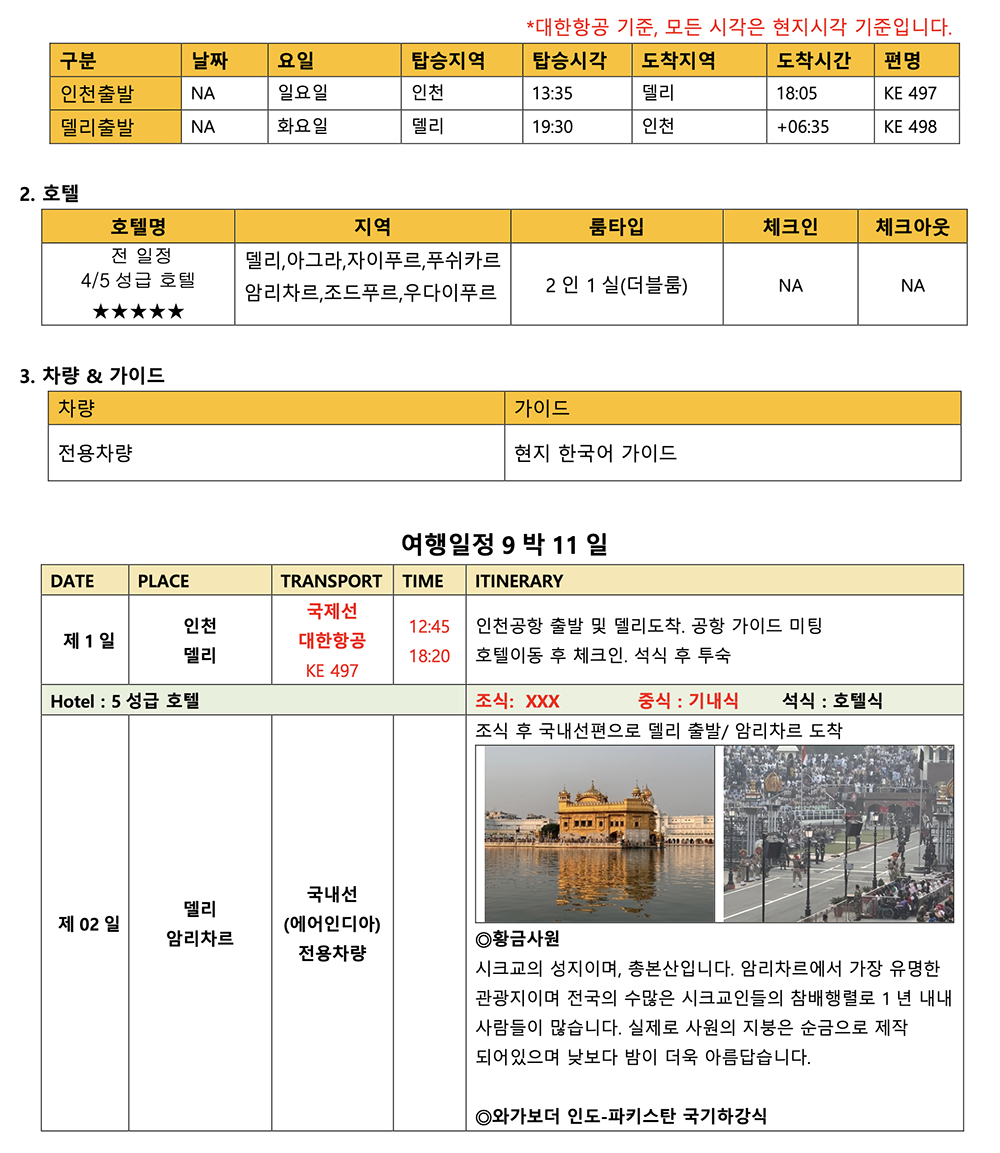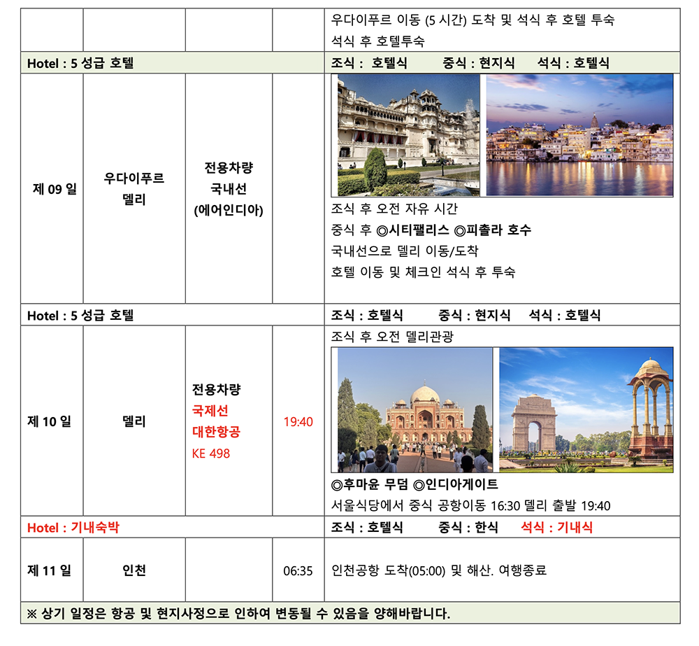 일정이 변경되어 발생하는 모든 비용(숙박/식사/교통 등)고객이 부담합니다.