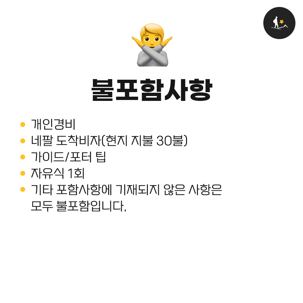 일정이 변경되어 발생하는 모든 비용(숙박/식사/교통 등)고객이 부담합니다.