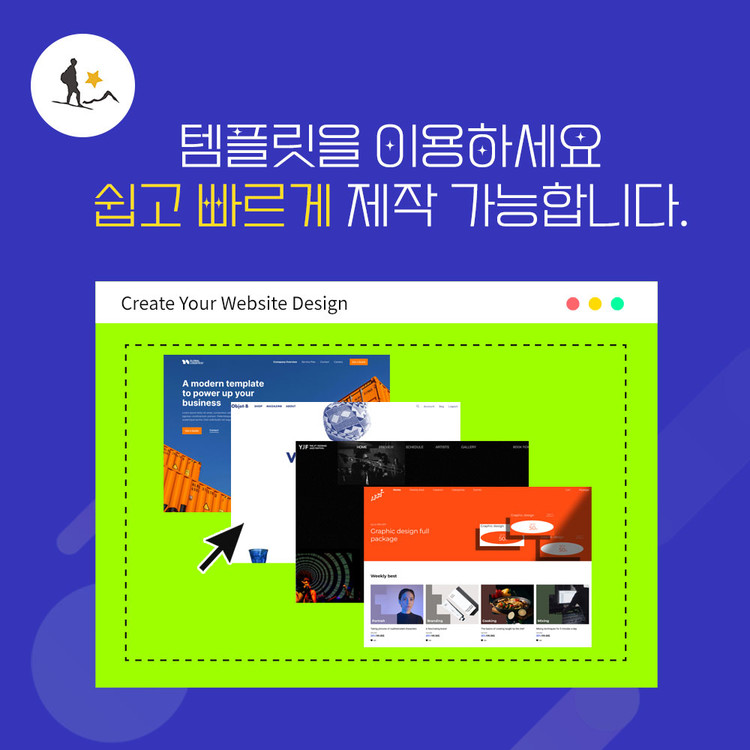 템플릿 선택해서 그대로 사용해도 수준높은 홈페이지가 뚝딱 생성됩니다.
