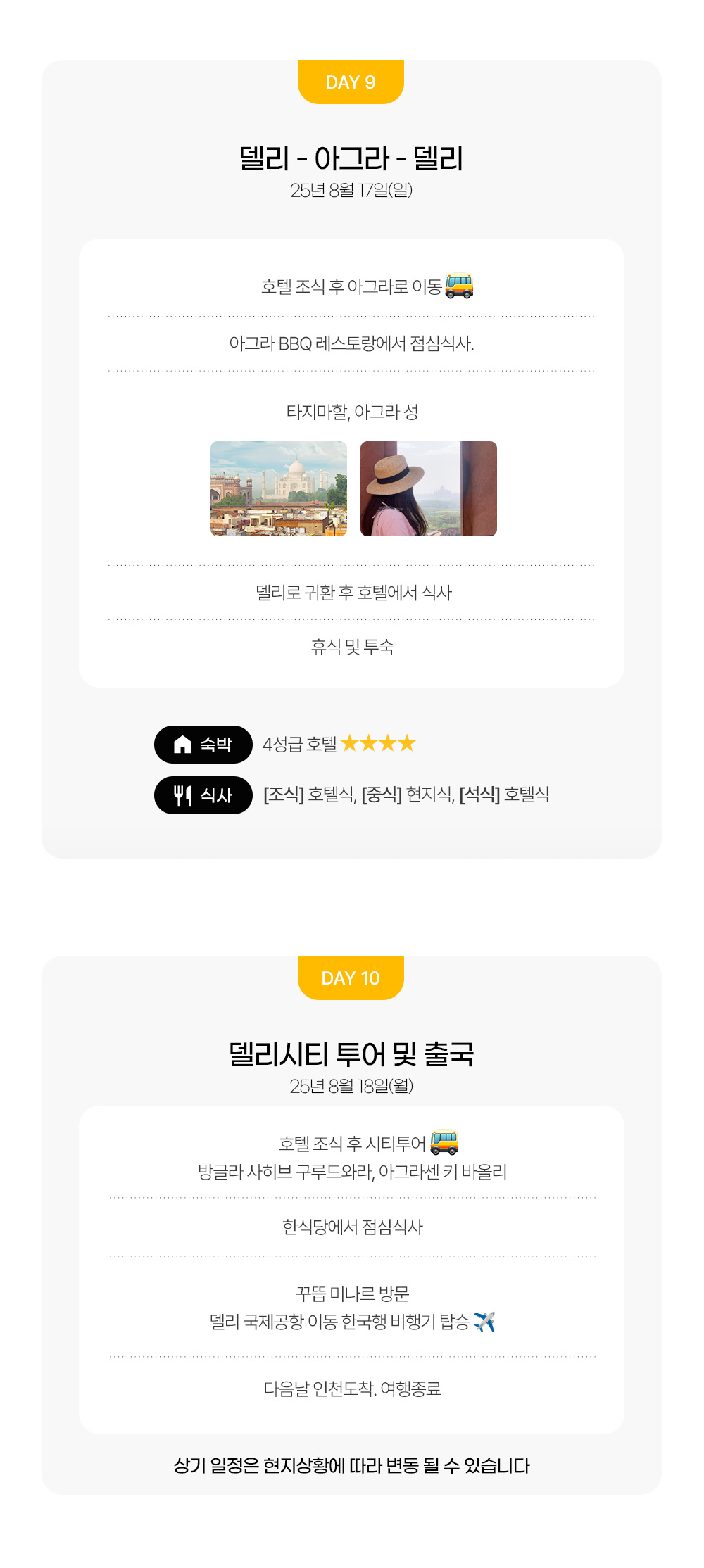 일정이 변경되어 발생하는 모든 비용(숙박/식사/교통 등)고객이 부담합니다.